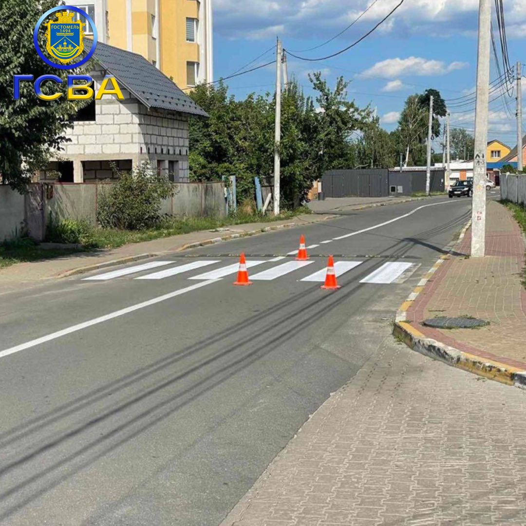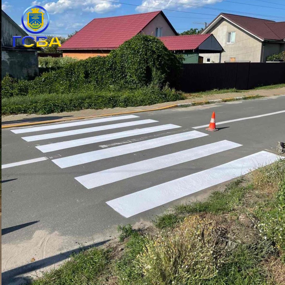 Фахівці КП «Благозеленбуд» активно працюють над покращенням благоустрою Гостомельської громади, зосереджуючись на підвищенні безпеки дорожнього руху. Нещодавно було проведено важливе оновлення дорожньої розмітки та пішохідних переходів у селищі Гостомель. Ці роботи включають нанесення нової розмітки проїзної частини, що є ключовим для чіткого розмежування смуг руху та запобігання дорожньо-транспортним пригодам. Також було оновлено пішохідні переходи, що безпосередньо впливає на безпеку пішоходів, особливо дітей та літніх людей, забезпечуючи їм захищені шляхи для перетину дороги. Загальний рівень безпеки дорожнього руху в громаді значно підвищився завдяки цим заходам.