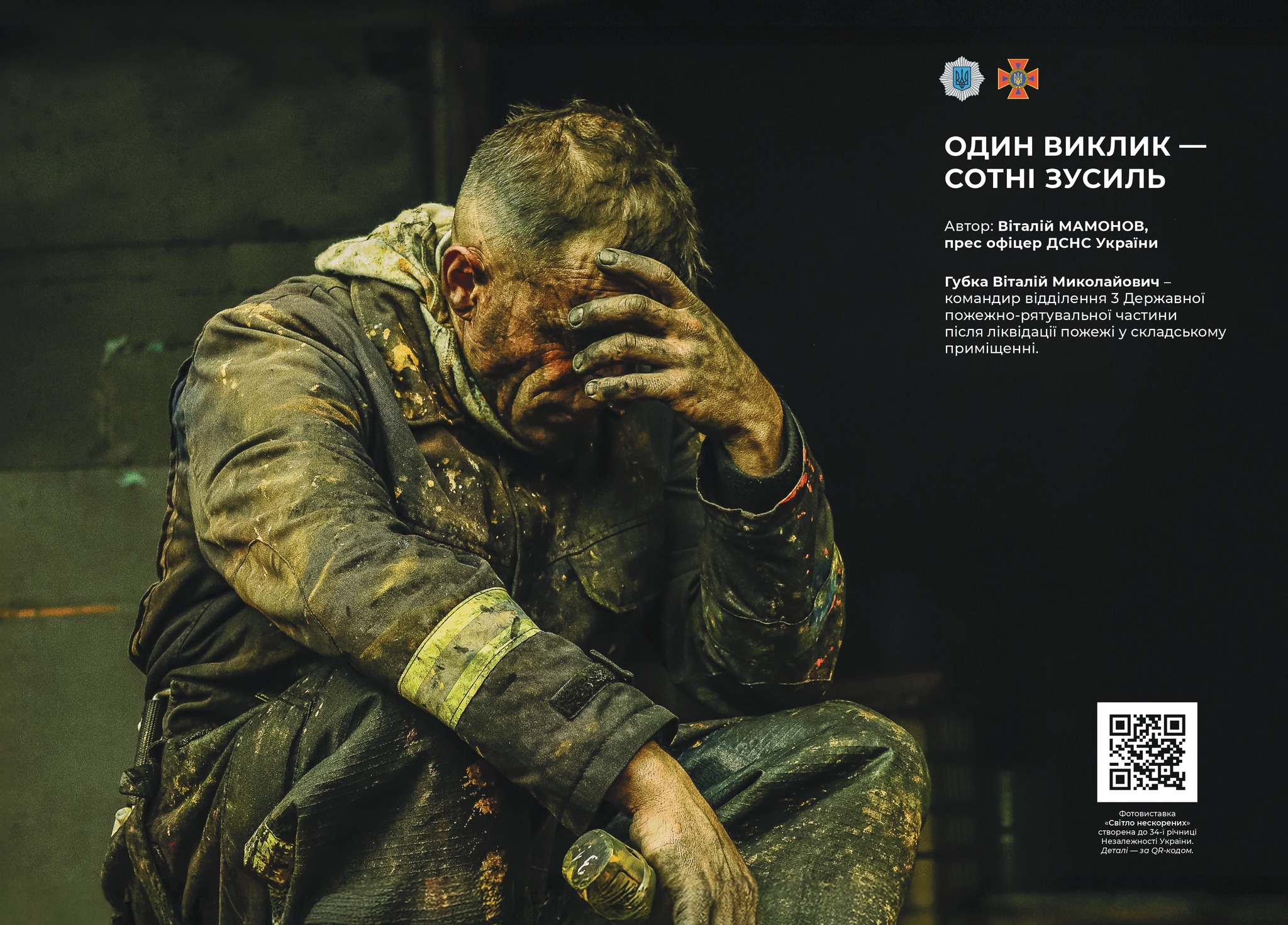 ▫️«Один виклик — сотні зусиль»: фото командира відділення 3 Державної пожежно-рятувальної частини після ліквідації пожежі у складському приміщенні. Автор: Віталій Мамонов.