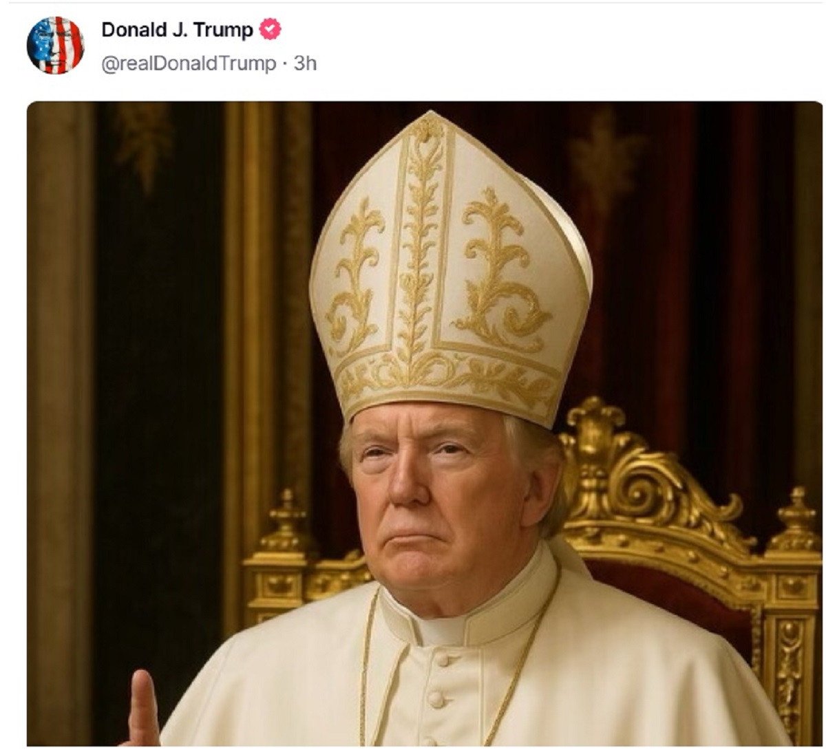 «У цьому зображенні немає нічого розумного чи смішного, пане президенте. Ми щойно поховали нашого улюбленого Папу Франциска, і кардинали ось-ось розпочнуть урочистий конклав, щоб обрати нового наступника Святого Петра. Не насміхайтеся з нас», — йдеться в заяві.