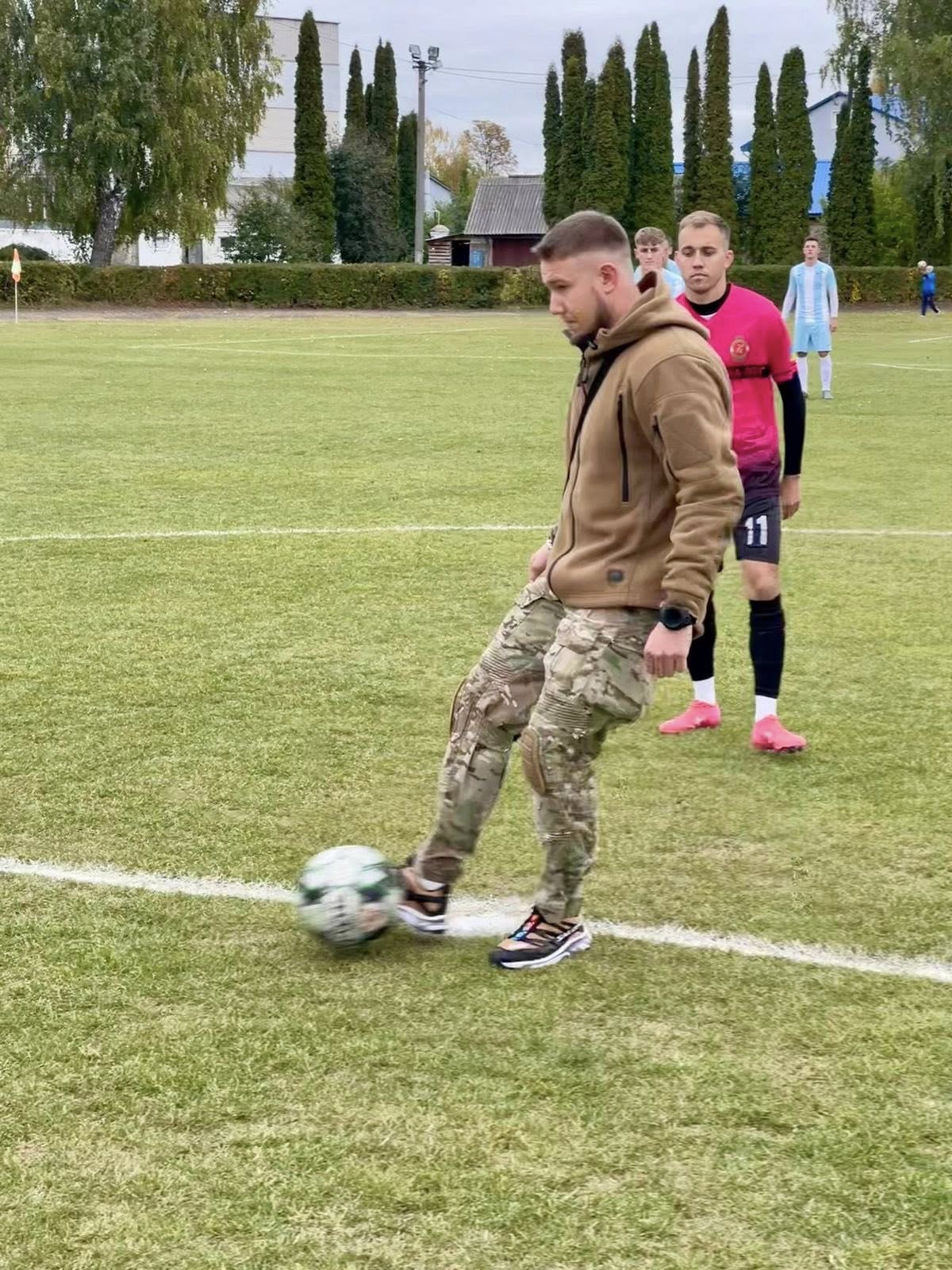 Право першого удару по м’ячу було надано Воїну-Захиснику — молодшому сержанту Сил спеціальних операцій Альберту Гору. Всі присутні зустріли його гучними оплесками — як знак щирої подяки нашим Героям 🇺🇦.