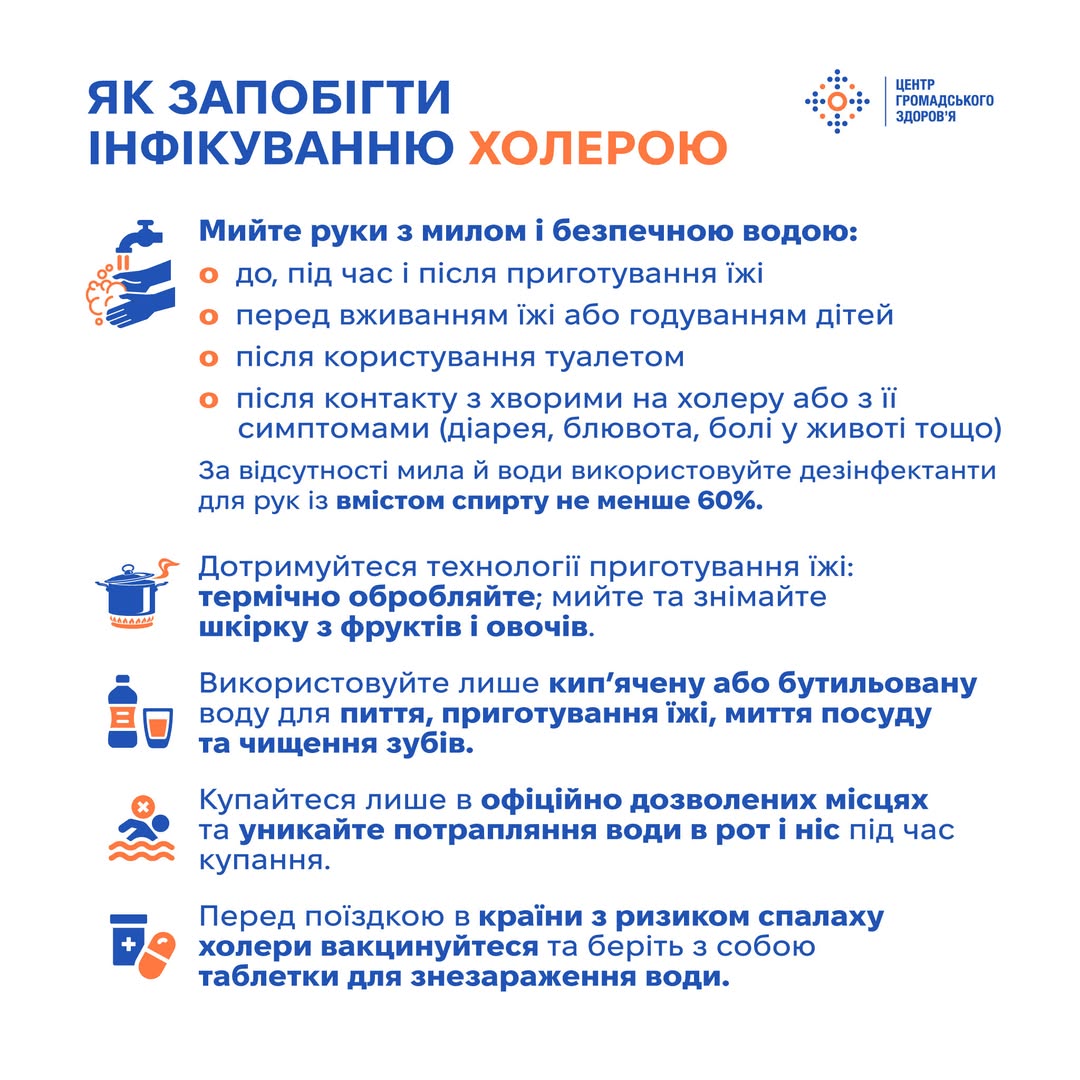 👉 Більше про те, як убезпечити себе від зараження холерою, читайте на сайті ЦГЗ https://tinyurl.com/y9ckrj6x