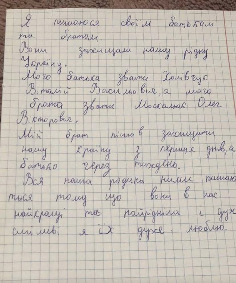 Віталіна Холівчук з гордістю говорить про свого тата та брата: «Вони не просто чоловіки в моєму житті — вони мої Герої, мої захисники, моє натхнення. Дякую вам за все. 💙💛» Ці слова – віддзеркалення почуттів багатьох українських дітей, чиї рідні стали на захист Батьківщини. Кожна така історія – це цеглинка у великій стіні вдячності та пам’яті.