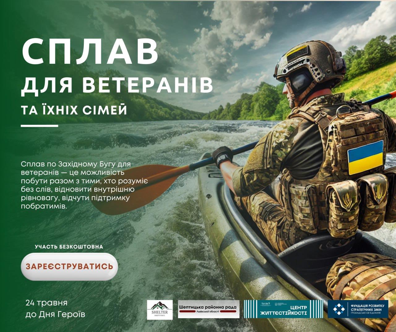 Центр життєстійкості Шептицького у співпраці з ГО “Фундація розвитку та стратегічних змін” та Шептицькою районною радою, за підтримки проєкту “Shelter”, організовує унікальний сплав на байдарках по мальовничій річці Західний Буг. Ця подія приурочена до Дня Героїв і призначена для ветеранів російсько-української війни, як спосіб вшанування їхнього подвигу та сприяння психологічній реабілітації.