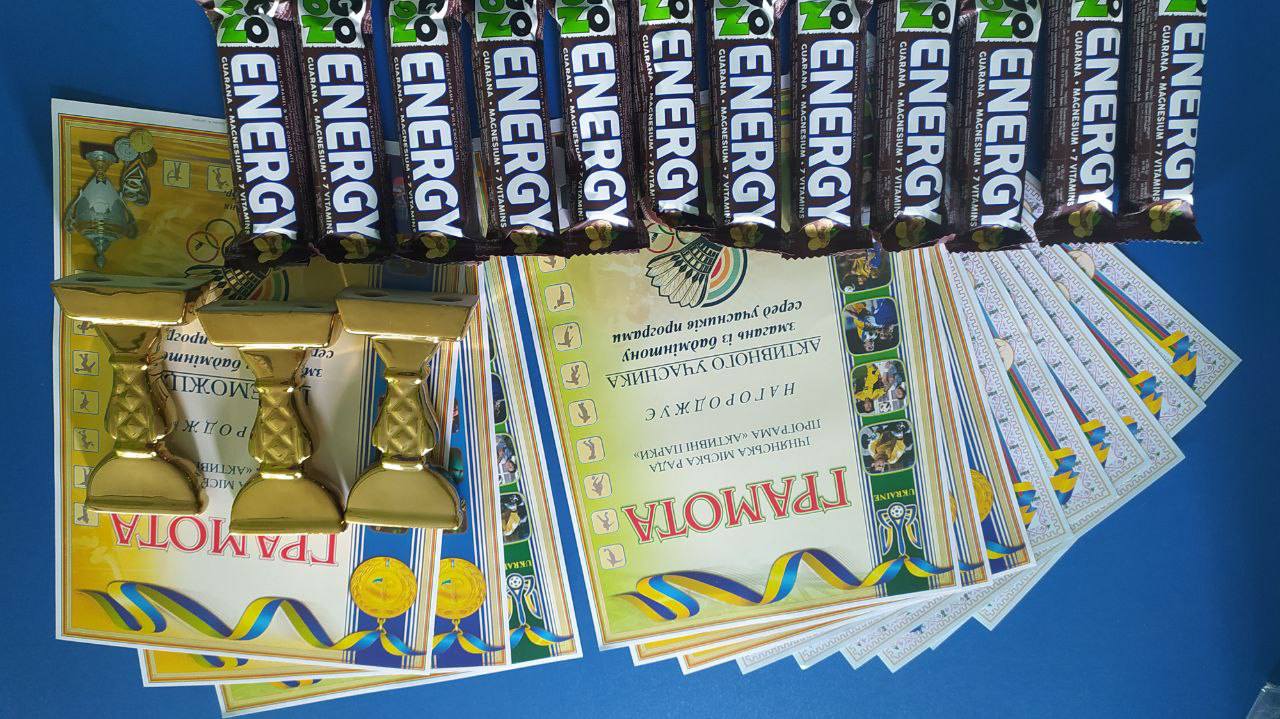 У напруженій боротьбі перемогу здобула команда у складі Майстренко Кіри, Бабіч Аліни та Дзеха Давида! Вітаємо переможців!💪 Всі учасники змагань з бадмінтону були нагороджені грамотами та солодкими подарунками – цукерками, а переможці отримали ще й чудові статуетки на згадку про свою перемогу.