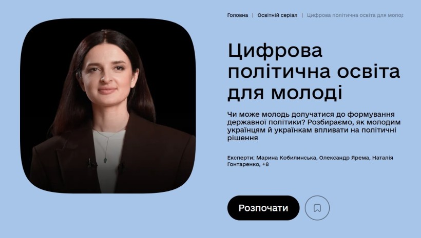 На освітній платформі Дія.Освіта https://osvita.diia.gov.ua стартував новий безкоштовний освітній серіал під назвою «Цифрова політична освіта для молоді». Цей курс покликаний заповнити прогалини у знаннях української молоді щодо функціонування держави та механізмів громадянської участі. Серіал складається з 10 коротких, але інформативних епізодів, які простою мовою пояснюють складні політичні та державні процеси.