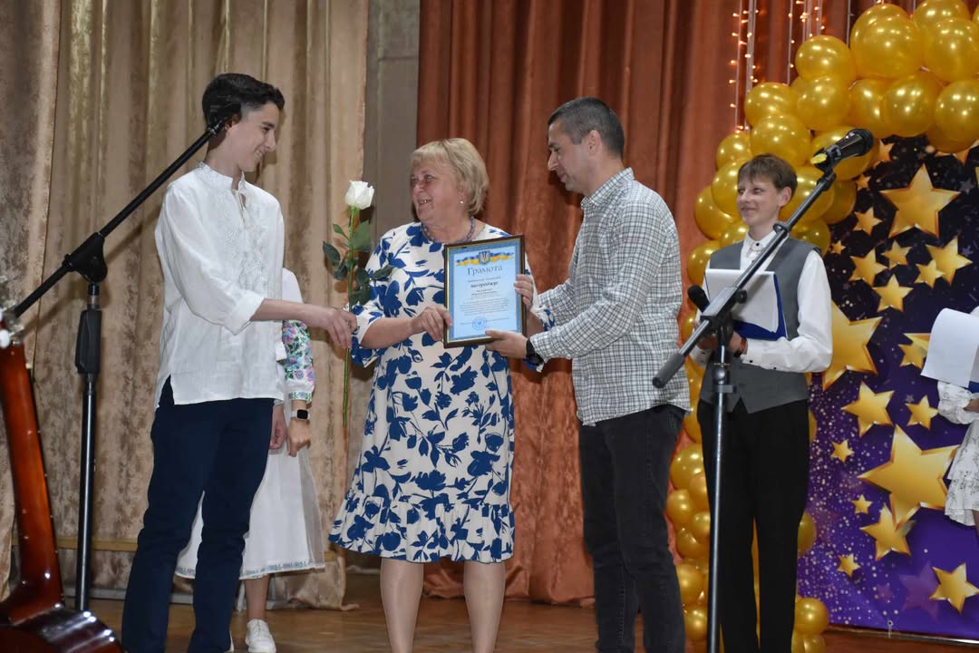 🌟 Під час цього святкового дійства були відзначені викладачі музичної школи, які протягом багатьох років ділилися з дітьми своїм натхненням, безцінним досвідом, невичерпним терпінням та знаннями. Їм вручили почесні грамоти та чудові квіти, а в залі лунали гучні оплески — щирі, абсолютно заслужені та сповнені вдячності.
