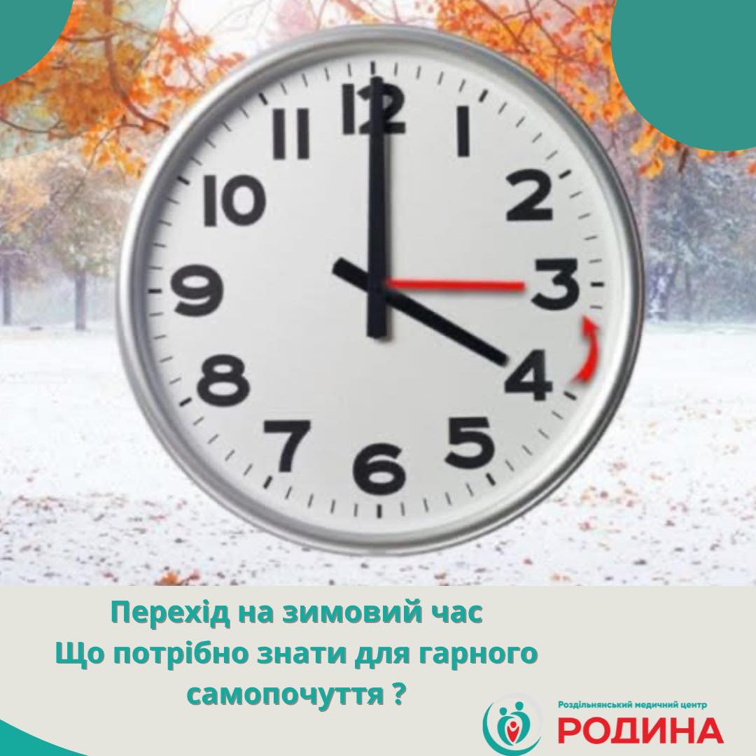 Цього року для переходу на зимовий час стрілки годинників потрібно буде перевести на 1 годину назад у неділю, 26 жовтня, тобто час зміниться з 04:00 на 03:00. Медичний центр «Родина» у Роздільній надає цінні поради, як пережити цей щорічний перехід на зимовий час з найменшими наслідками для вашого здоров’я.
