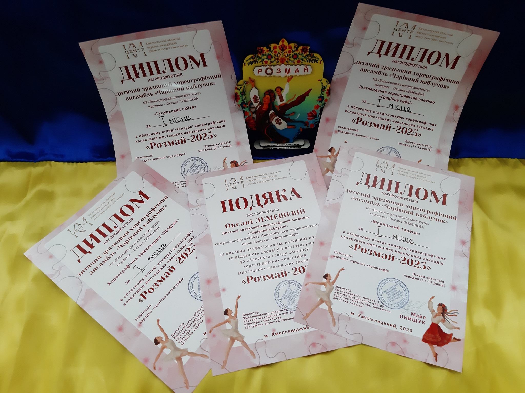 Дитячий зразковий хореографічний ансамбль “Чарівний каблучок” з гордістю повідомляє про свої неймовірні досягнення! На обласному огляді-конкурсі хореографічних колективів у Хмельницькому, наш ансамбль виборов аж ЧОТИРИ ПЕРШИХ місця! Це свідчення наполегливої праці, таланту та відданості наших дітей і керівників.