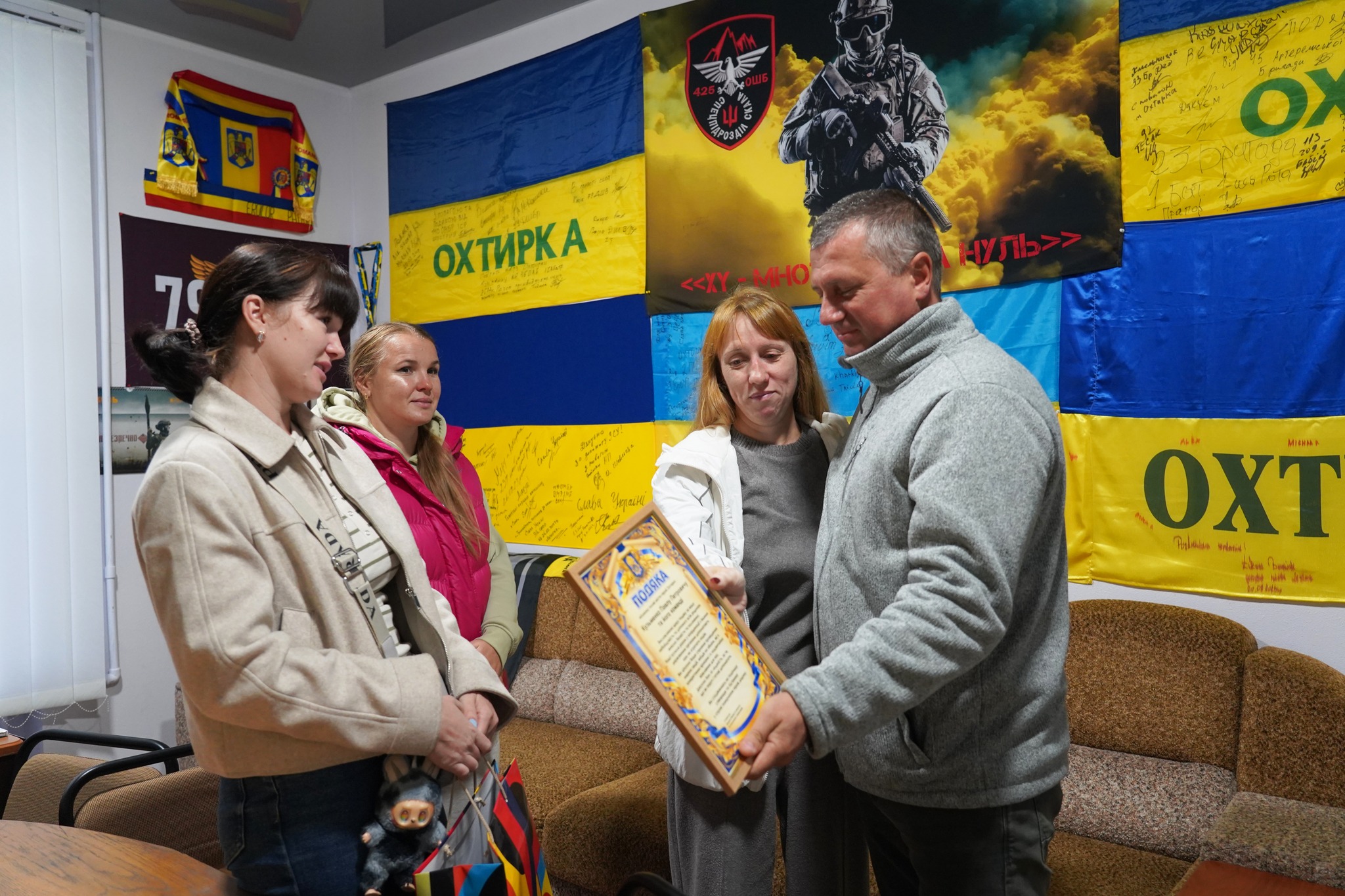🔸 Сьогодні до міської ради завітали постійні та найвідданіші учасниці акції, представниці родин зниклих безвісти та військовополонених. Серед них: Альона РУСЕЦЬКА (дружина зниклого безвісти Святослава РУСЕЦЬКОГО), Марина БОНДАРЄВА (донька зниклого безвісти Віктора ВАСИЛЬЧЕНКА) і Альона БАКЛАНОВА (сестра зниклого безвісти Олега ЯРОШЕНКА). Вони прийшли, щоб обговорити подальші спільні кроки та нові ініціативи, а також висловити щиру подяку Павлу КУЗЬМЕНКУ за його чуйність, підтримку та допомогу всім родинам, які переживають ці складні часи.