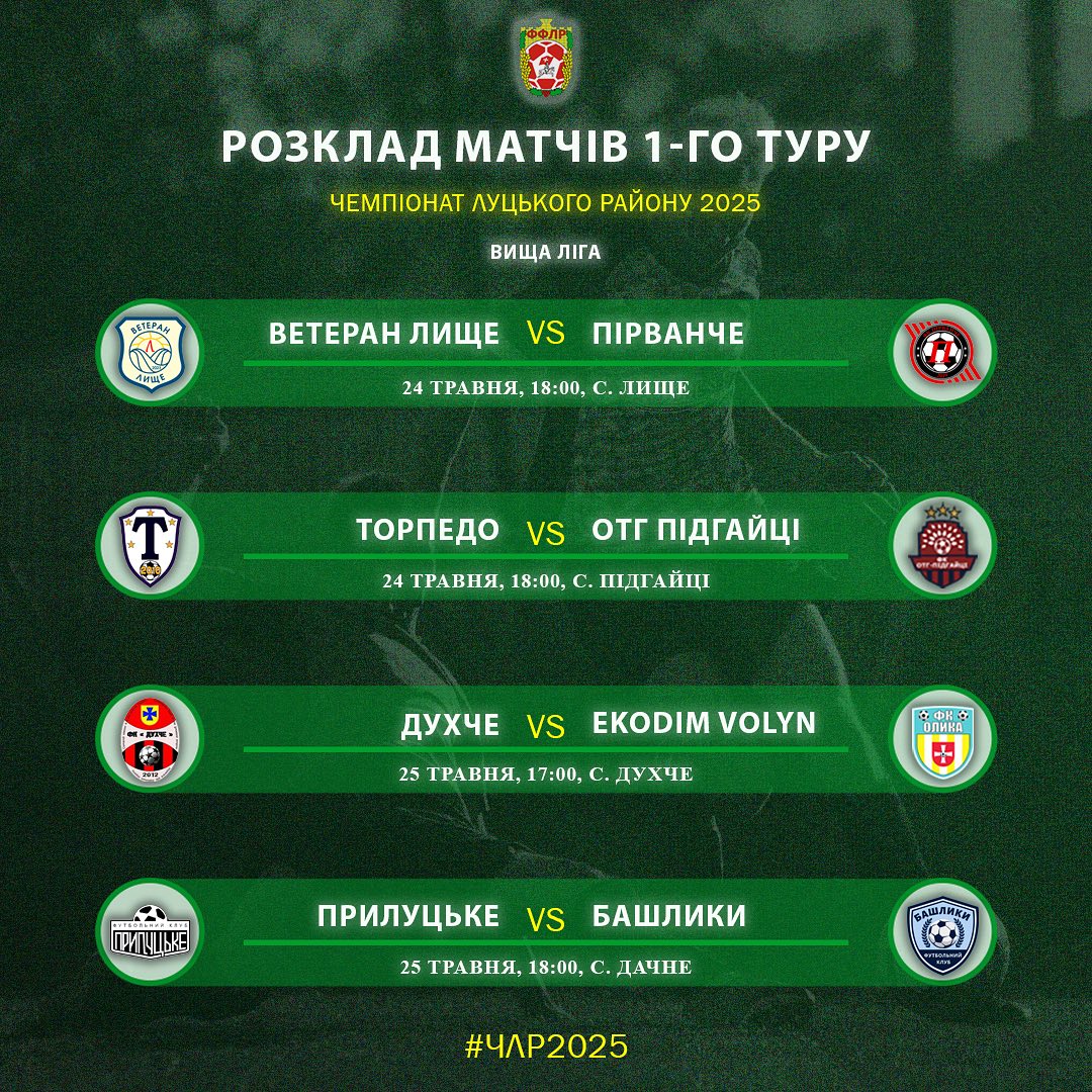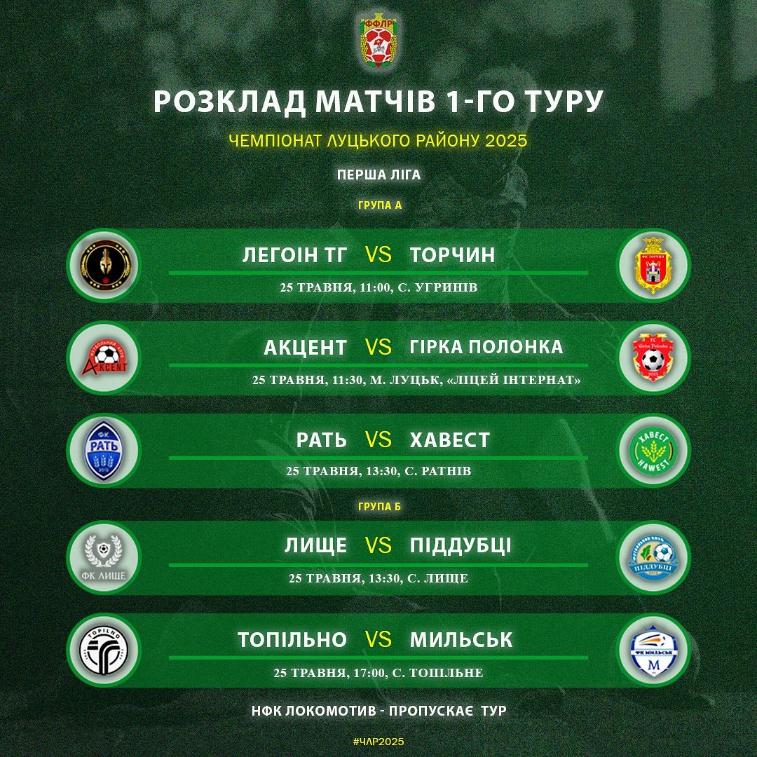 Чемпіонат Луцького району 2025: Розклад першого туру