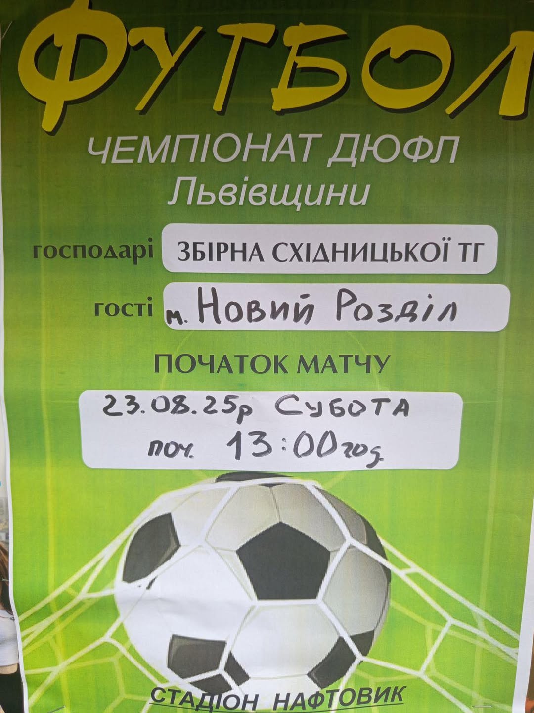 Запрошуємо всіх шанувальників футболу, мешканців Східниці та сусідніх населених пунктів, а також гостей нашої чудової громади! Давайте разом створимо незабутню атмосферу на стадіоні «Нафтовик» і покажемо, як ми вміємо підтримувати наших спортсменів. Ваша підтримка – це наш 12-й гравець!