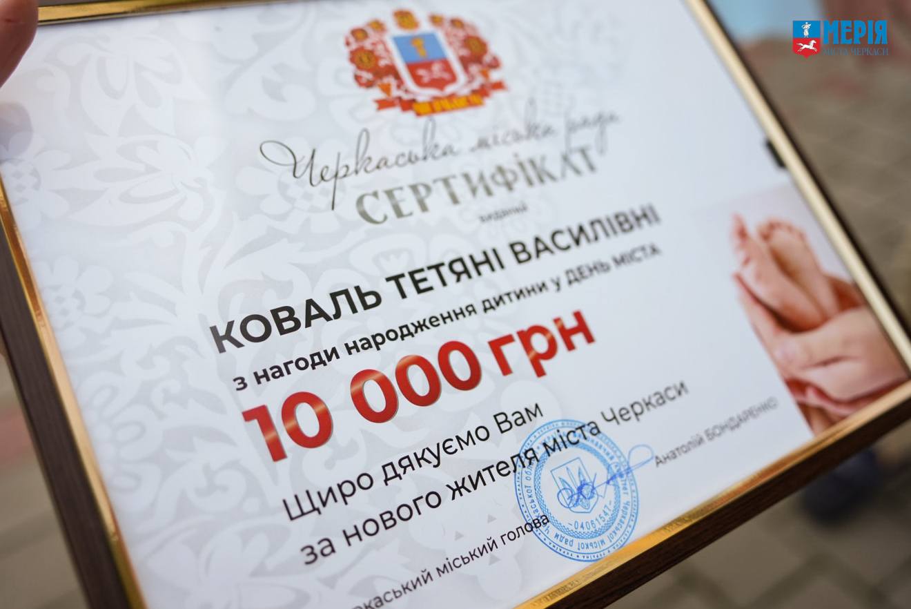 Цьогоріч, 20 вересня, у Черкасах народилося троє щасливих малюків: один хлопчик з’явився на світ у Черкаському міському пологовому будинку, а ще один хлопчик та дівчинка — в обласному перинатальному центрі. Мами цих дітей також не залишаться без уваги і отримають сертифікати, що засвідчує турботу міської влади про нові родини.