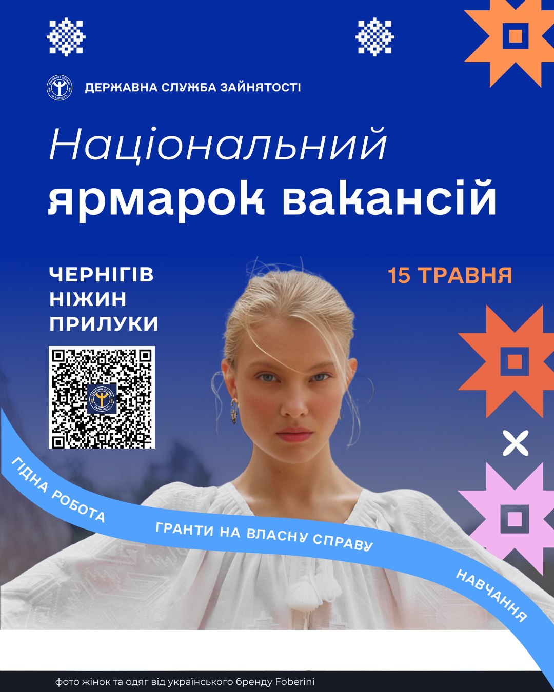 Чернігівський обласний центр зайнятості запрошує всіх на національний ярмарок вакансій, що відбудеться 15 травня в Чернігові, Ніжині та Прилуках. Цей масштабний захід пройде одночасно у всіх регіонах України, як у великих обласних центрах, так і в невеликих районних містечках. Для прифронтових територій буде організовано онлайн-формат ярмарку.