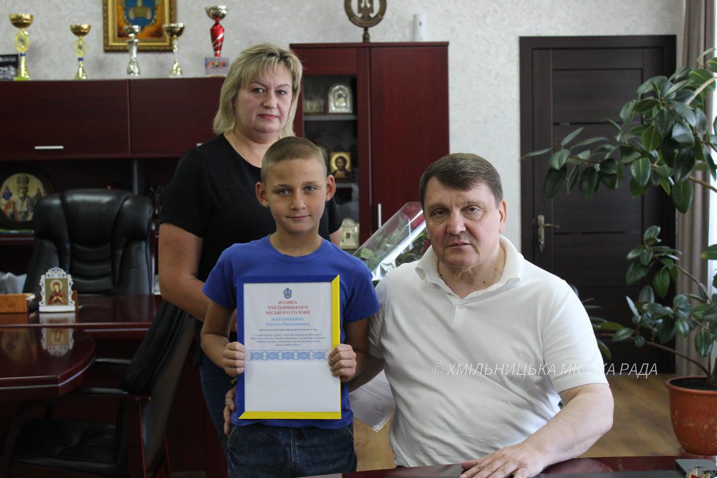 Подяку за свого мужнього татуся отримав восьмирічний син Віталій разом зі своєю мамою Лілією Віталіївною.