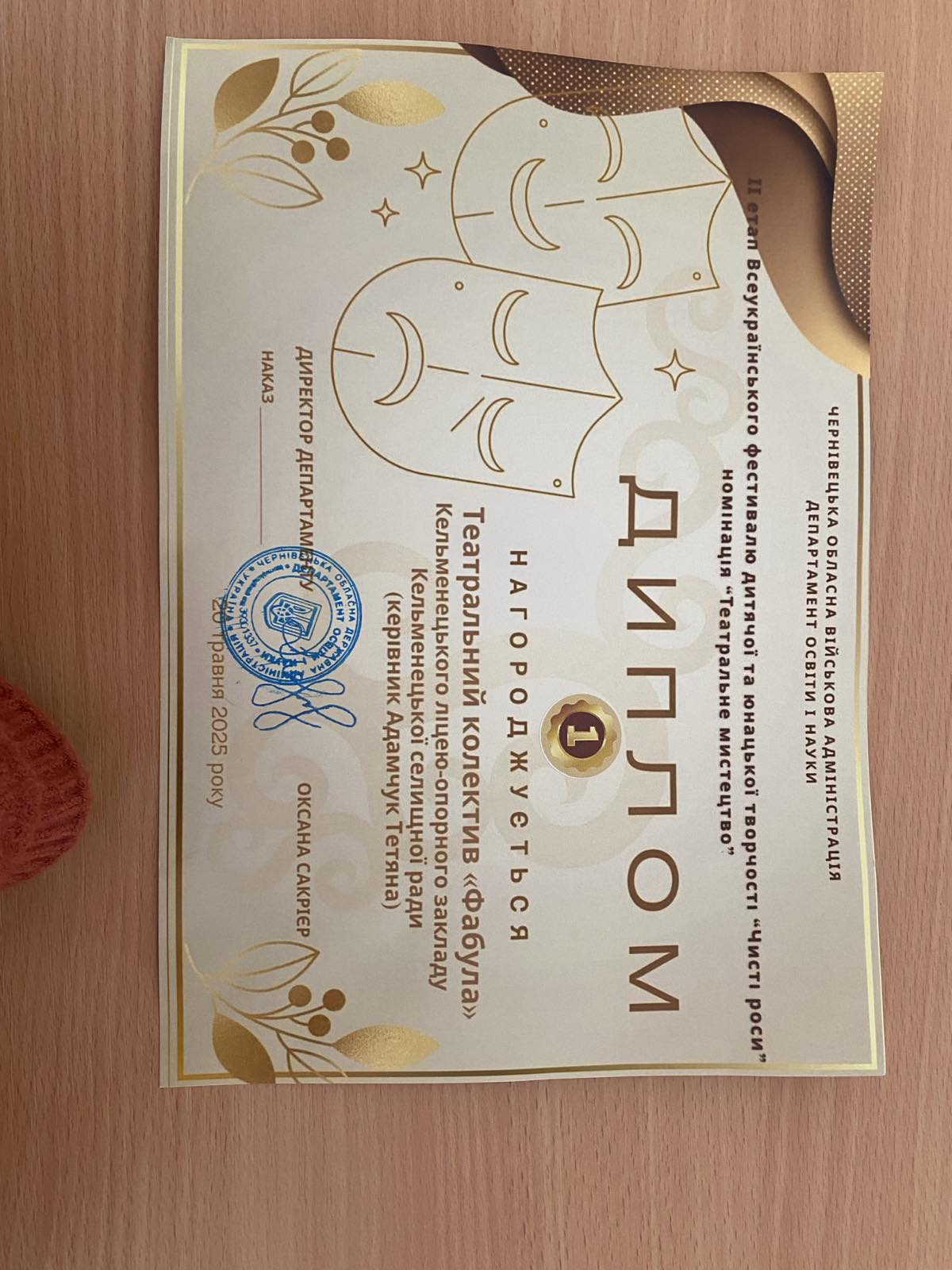 Кельменецьку територіальну громаду на фестивалі «Чисті роси – 2025» представляв театральний колектив «Фабула» Кельменецького ліцею-опорного закладу під керівництвом Адамчук Тетяни Олександрівни. За результатами оцінювання журі, колектив «Фабула» здобув почесне І місце. Вітаємо керівника та учасників колективу з високим рівнем виступу та бажаємо подальших творчих звершень і перемог!