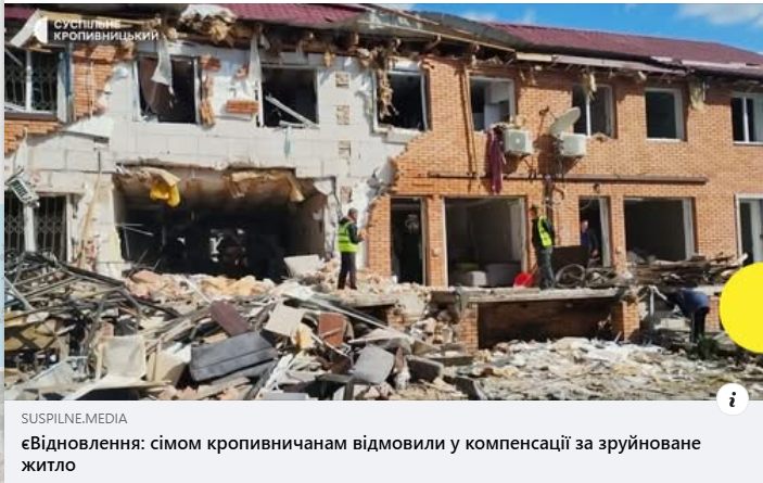 Після брифінгу в Кропивницькій міській раді щодо ліквідації наслідків повітряного удару по житловій забудові, з’явилася публікація з заголовком: «єВідновлення: сімом кропивничанам відмовили в отриманні компенсації за зруйноване житло». Це викликало негативну реакцію та розчарування.