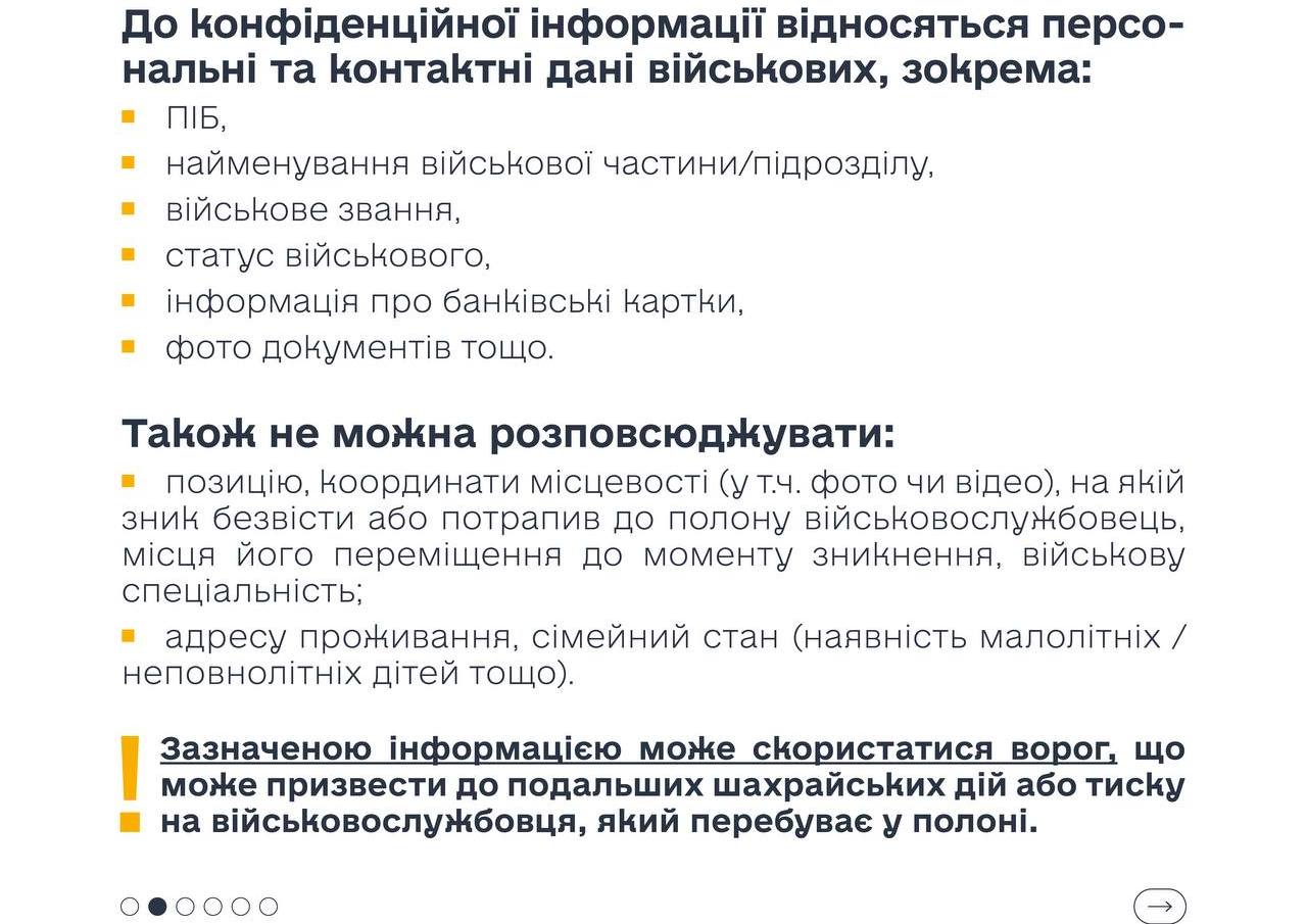 Шахраї ретельно моніторять соціальні мережі, вишукуючи повідомлення від родичів полонених або зниклих безвісти. Вони створюють фейкові акаунти, видаючи себе за представників державних установ чи міжнародних організацій, щоб обманом виманити гроші. Важливо пам’ятати: жодна офіційна структура чи волонтерська організація ніколи не вимагатиме оплату за надання інформації або допомогу. Будьте пильними та не довіряйте підозрілим запитам.