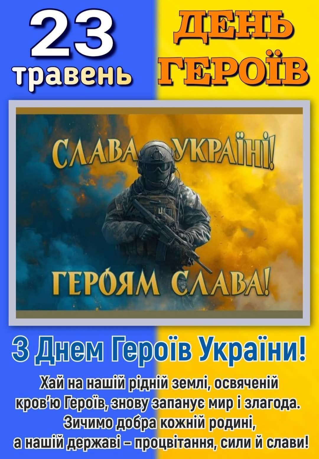23 травня – День Героїв України. Це день, коли ми віддаємо шану та висловлюємо безмежну вдячність кожному захиснику нашої країни. З початку цієї жахливої війни День Героїв набув для нас особливого значення, ставши символом незламності та відваги.