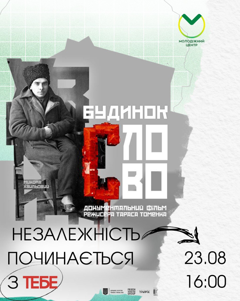 🔹 Перегляд документального фільму «Будинок “Слово”» – стрічка, що занурює у трагічну долю української творчої еліти, яка мешкала в одному будинку в Харкові. Фільм розкриває атмосферу того часу та особисті драми митців.