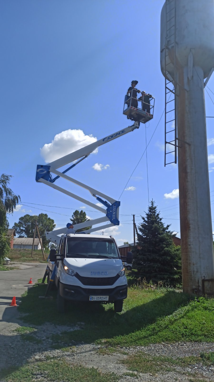✅З допомогою автопідйомника IVECO проведено електромонтажні роботи в Балівці.
