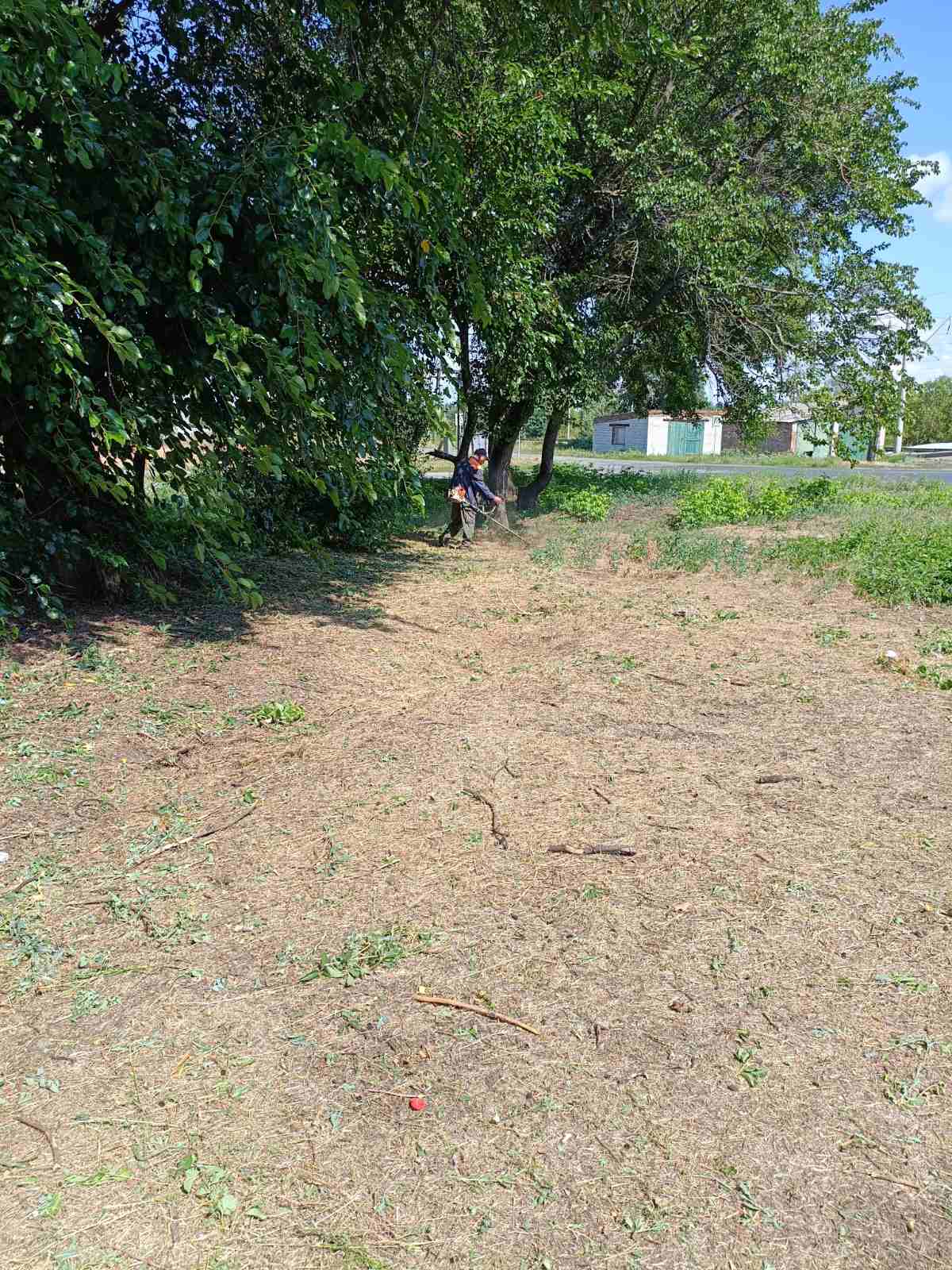✅ Здійснюється викошування ділянок комунальної власності по вул. Шкільній та біля пам’ятника «Скорботна мати» в центрі села.