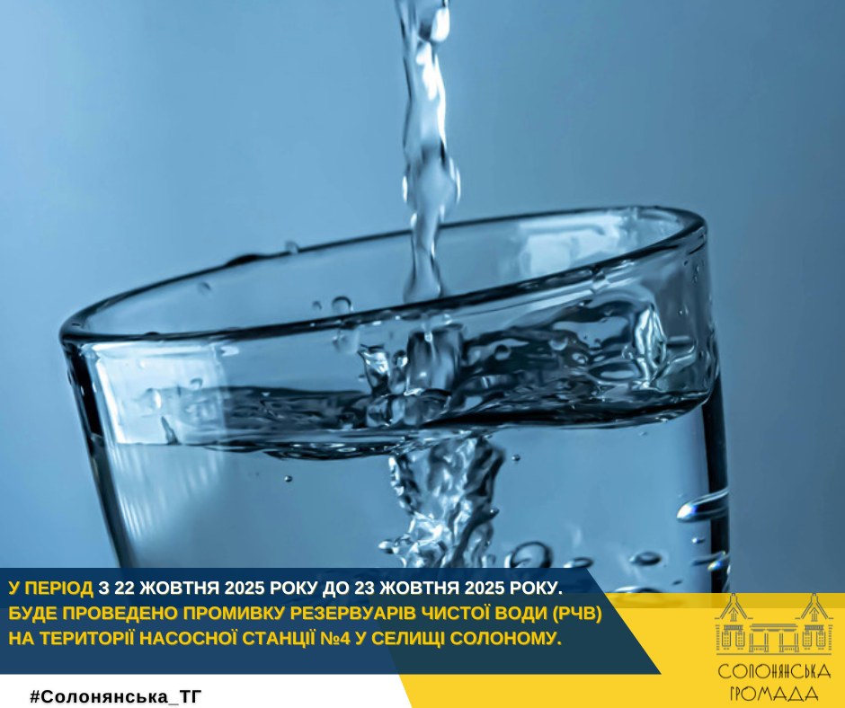 Інформуємо вас про проведення важливих технічних робіт з метою покращення якості води. Згідно з графіком планово-попереджувальних робіт на 2025 рік, буде здійснено промивку резервуарів чистої води (РЧВ). Ці роботи проходитимуть на території насосної станції №4, розташованої у селищі Солоному.