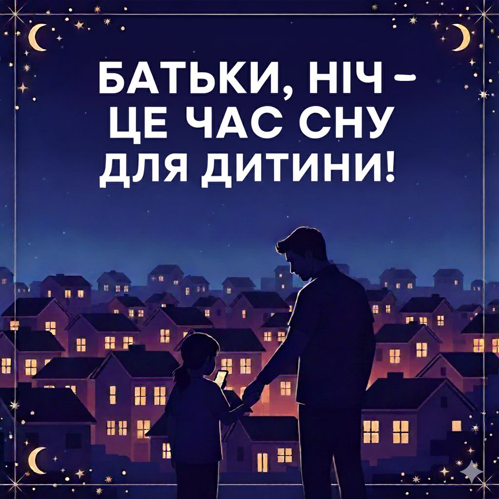 З метою профілактики правопорушень серед неповнолітніх та запобігання можливим ризикам, наполегливо рекомендуємо не допускати перебування дітей віком до 18 років у громадських місцях після 22:00. Ця норма стосується перебування без супроводу батьків або законних представників.