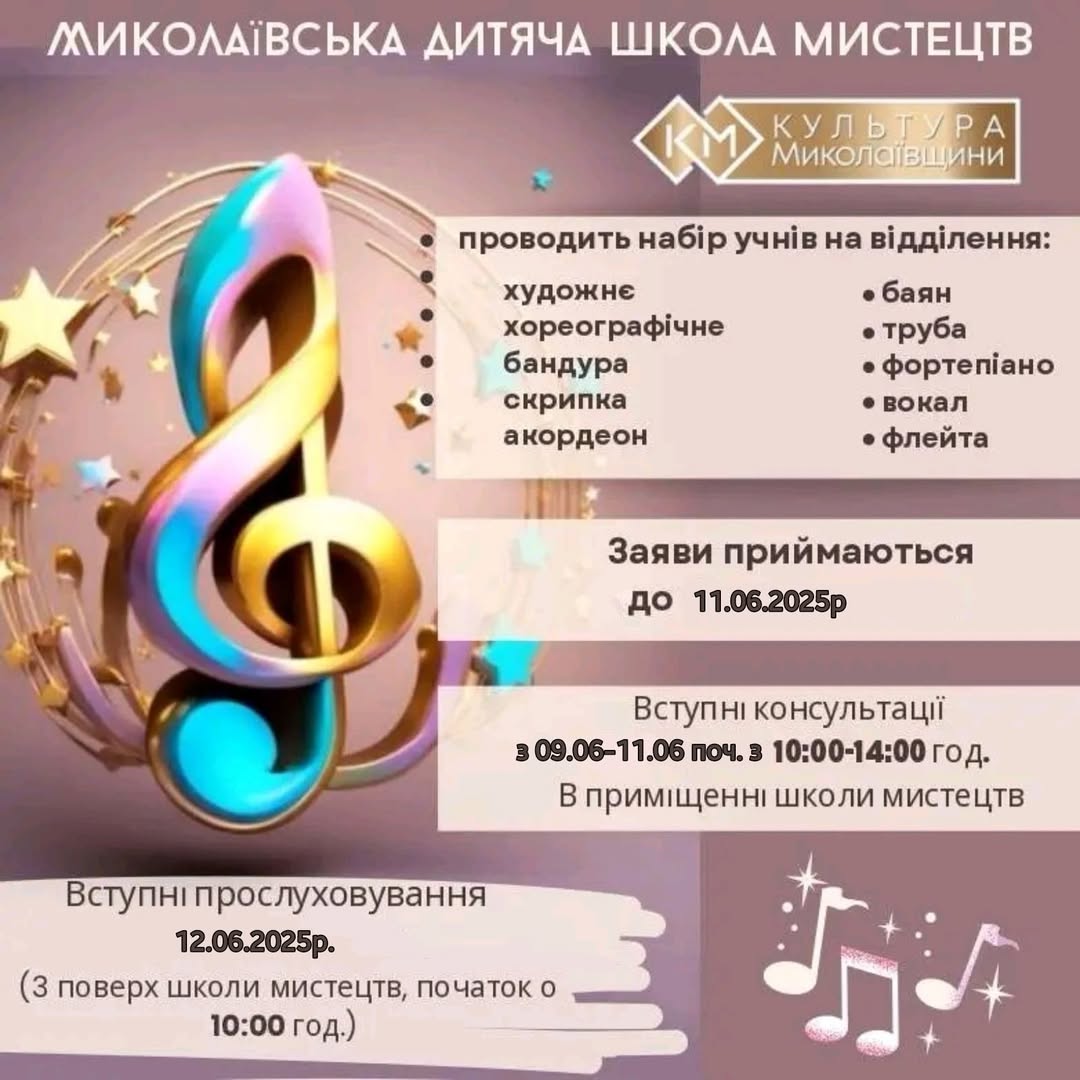 Миколаївська школа мистецтв: Набір на 2025/2026 рік