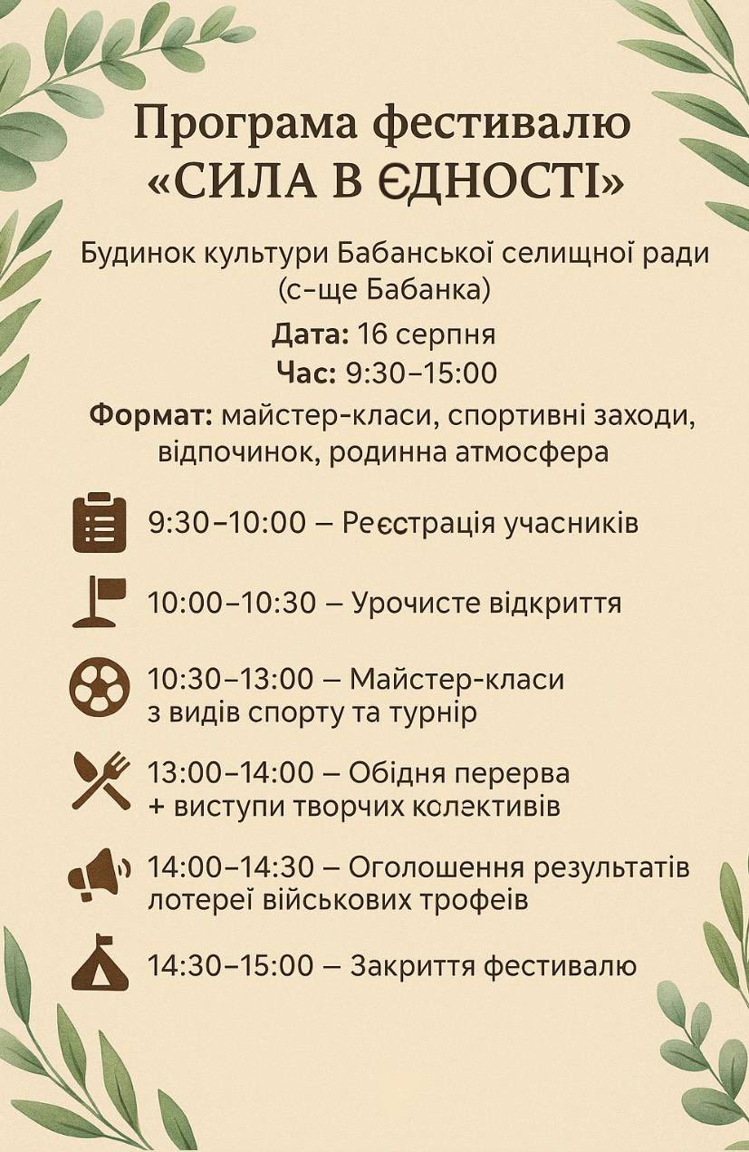 Запрошує Вас взяти участь у спортивно-сімейному фестивалі «СИЛА В ЄДНОСТІ»,