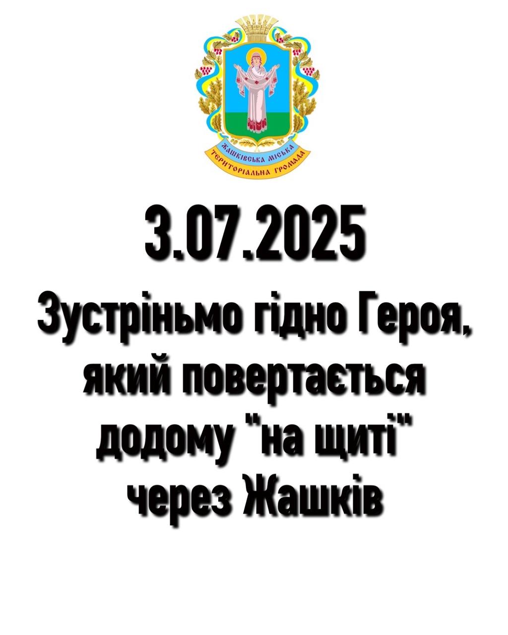 ◾️Останній шлях загиблого Героя пролягатиме через місто Жашків – вулицями Захисників України, Соборна, Городищанська, Василя Стуса до виїзду з міста та через с. Тетерівка. Зустріньмо гідно воїна живим коридором!