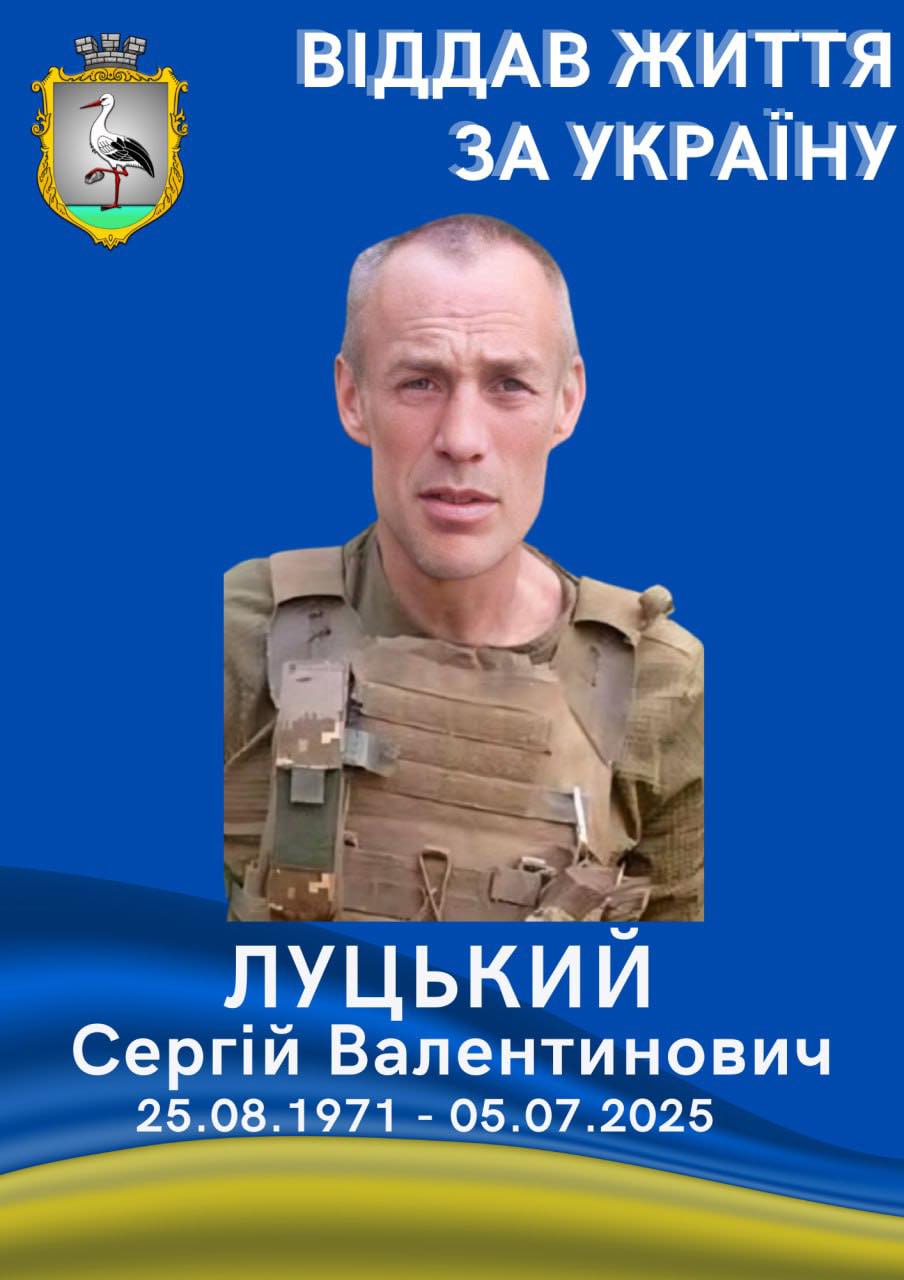 Сьогодні, 9 липня 2025 року очікується прибуття тіла нашого полеглого Захисника — Луцького Сергія, який віддав життя, боронячи незалежність та свободу України.