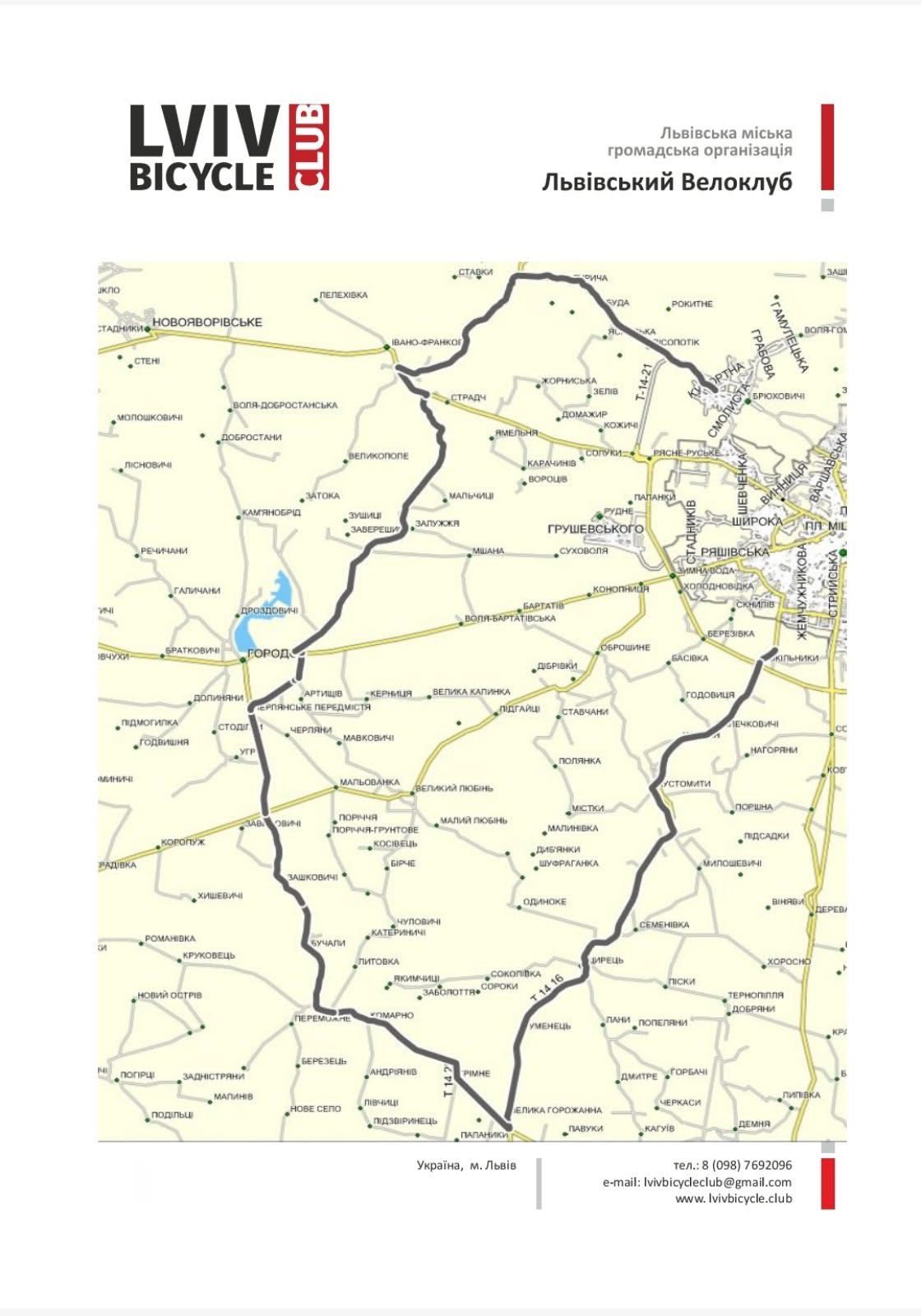 Сокільники — Наварія — Пустомити — Щирець — Комарно — Городок — Страдч — Івано-Франкове — Лозино — Бірки — Брюховичі (детальніше див. додаток №1) - 12:30 — відкриття фінішу, смт Брюховичі (залізнична станція)