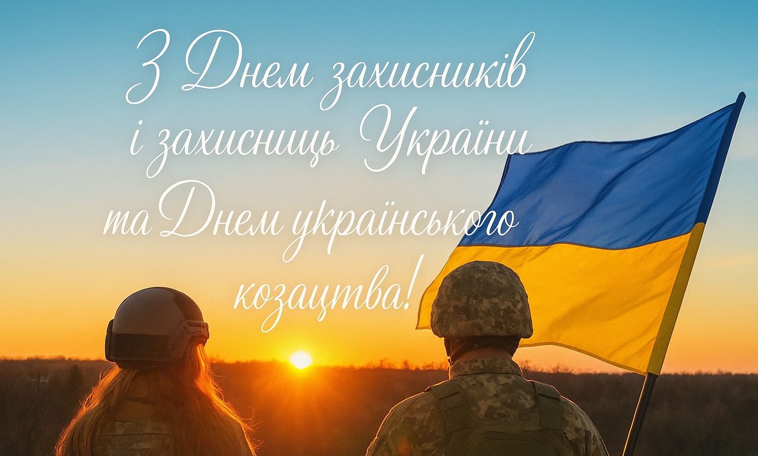 Щиро вітаємо вас з визначними святами — Днем захисників і захисниць України та Днем українського козацтва! Це особливий день, що об’єднує покоління та нагадує про незламний дух і героїзм українського народу. Це свято мужності, звитяги та незламності, яке глибоко резонує в серці кожного українця. Воно не лише вшановує славетне козацьке минуле, але й відзначає подвиги сучасних воїнів, добровольців, волонтерів та всіх, хто невпинно працює заради перемоги. Завдяки їхній силі духу, незмірній відвазі та самовідданості ми маємо можливість будувати своє життя, розвивати громаду та вірити у світле, мирне майбутнє.