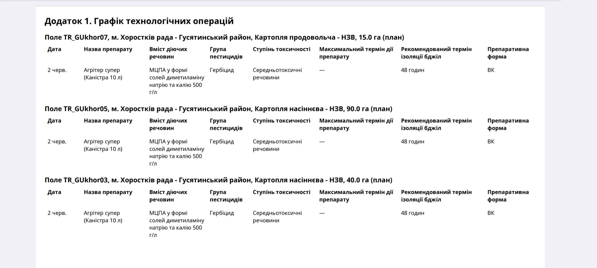 Звертаємо вашу увагу, що обприскування є важливою складовою сільськогосподарського процесу, що дозволяє забезпечити високу врожайність та якість продукції. Просимо дотримуватися рекомендацій та вживати необхідних заходів безпеки.