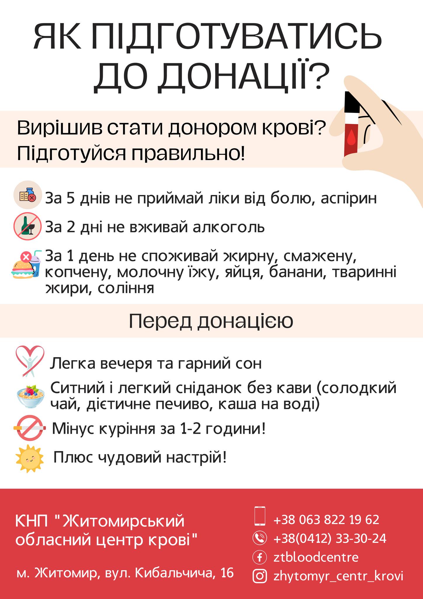 Щоб здача крові пройшла успішно і без наслідків, дотримуйтесь цих рекомендацій: