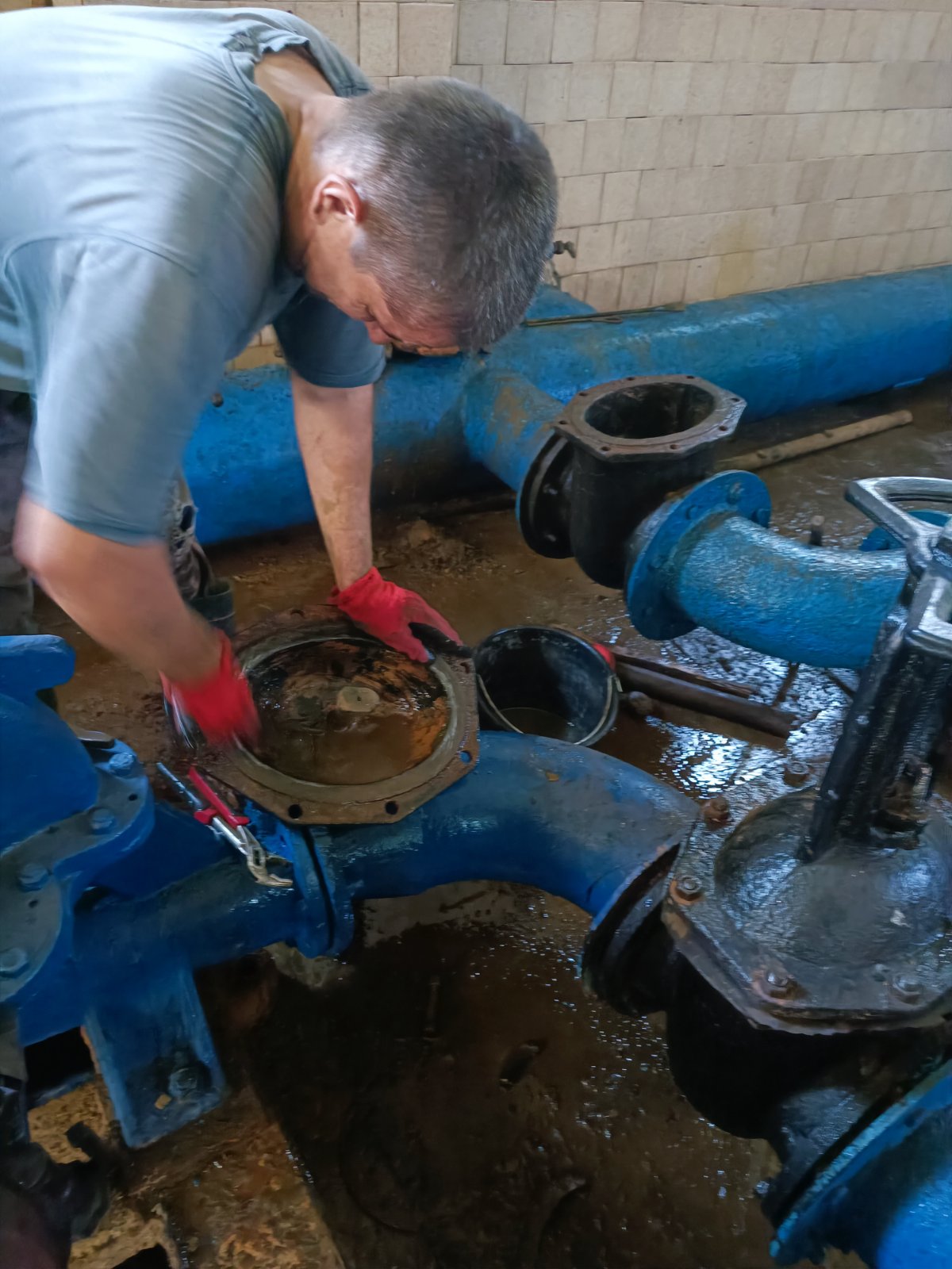 2. **Ремонтні роботи:** Виконано ремонт трьох вихідних засувок на водопроводі в машинному залі водонасосної станції. Завдяки цьому було відновлено нормальне функціонування системи.