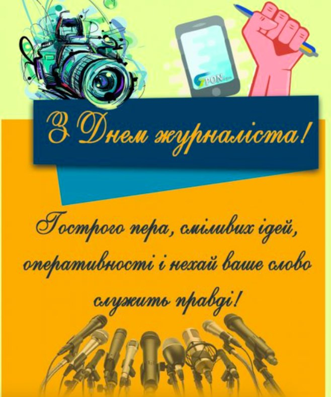 Шановні журналісти! Прийміть щирі вітання з нагоди вашого професійного свята – Дня журналіста! Нехай кожен ваш репортаж буде правдивим та об’єктивним, кожне інтерв’ю – глибоким та інформативним, а кожна стаття – змістовною та цікавою для читачів.