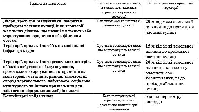 Згідно зі статтею 18 Закону України «Про благоустрій населених пунктів», підприємства, установи, організації та громадяни зобов’язані утримувати в належному стані об’єкти благоустрою, що перебувають у їх власності або користуванні, а також прилеглі до цих об’єктів території. Це означає, що кожен відповідає за чистоту та порядок навколо своєї власності.
