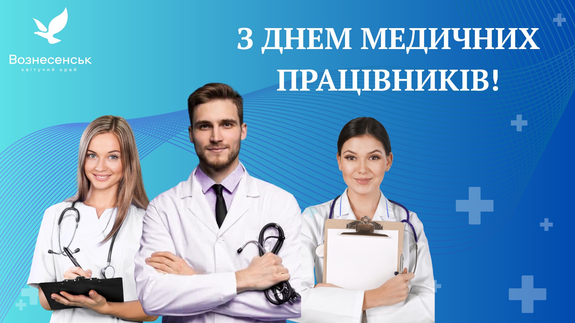 Сердечно вітаємо вас із професійним святом – Днем медичних працівників! Ваша самовіддана праця на передовій боротьби за найцінніше – життя та здоров’я – заслуговує на найвищу повагу. Особливо в ці складні для країни часи, ваша робота набуває надзвичайного значення. Ви – перші, хто приходить на допомогу, незважаючи на втому, небезпеку чи біль. Дякуємо за вашу силу, відданість, людяність, за кожне врятоване життя, добре слово та теплі руки, що лікують тіло й душу.
