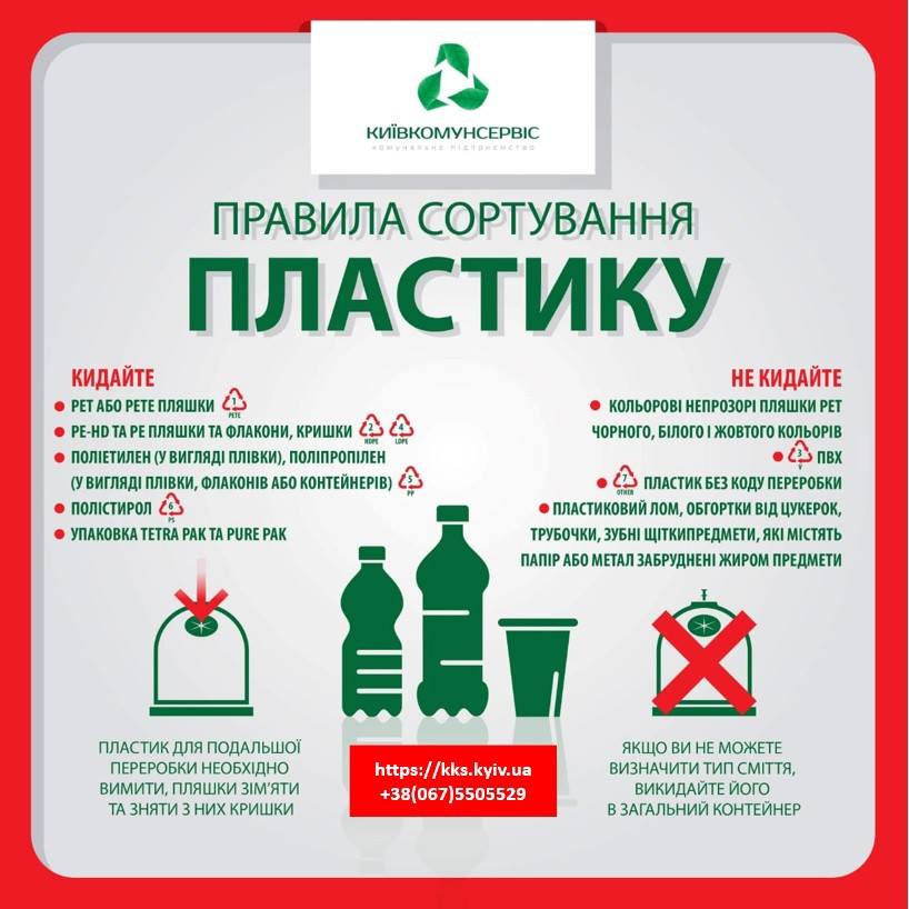 На кожному контейнері є наліпки з інформацією про правила сортування (види пластику та скла, що підлягають сортуванню та переробці). Якщо ви не впевнені щодо типу відходу, краще викиньте його у контейнер для змішаних відходів.