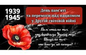 8 травня Україна відзначає День пам’яті та перемоги, вшановуючи загиблих у Другій світовій війні 1939–1945 років. Цей день є нагадуванням про трагічні події та героїчний опір, який український народ чинив проти нацизму. Ми віддаємо шану всім, хто віддав своє життя за свободу та незалежність, пам’ятаючи про їхній подвиг.