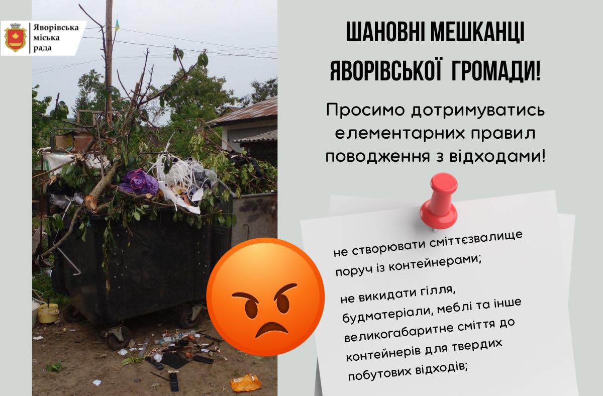 Дякуємо всім, хто дбає про чистоту і порядок у нашій громаді! Разом ми можемо зробити наше довкілля чистішим та комфортнішим для проживання. Дотримання правил поводження з відходами – це запорука нашої спільної екологічної безпеки та здоров’я.