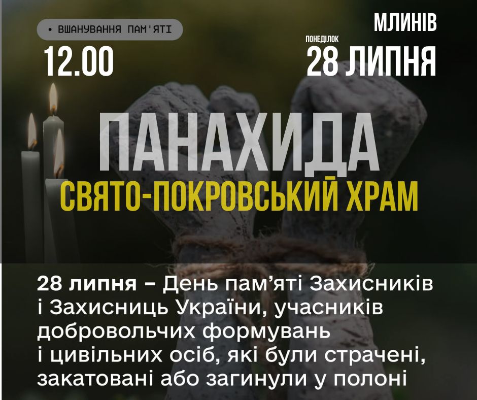 🕊️ У понеділок, 28 липня 2025 року, о 12:00, у Свято-Покровському храмі відбудеться особлива панахида. Ми вшануємо пам’ять усіх Захисників та Захисниць України, учасників добровольчих формувань та цивільних осіб, які стали жертвами полону.