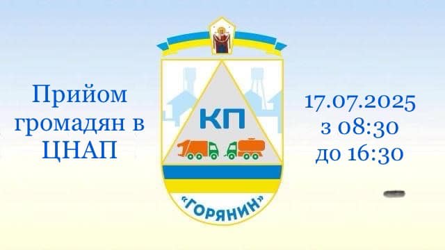 📌17 липня 2025 року з 08:30 до 16:30 годин (з 12:00-12:45 обідня перерва) в приміщенні Центру надання адміністративних послуг (ЦНАП) за адресою: с. Гора, вулиця Центральна 5, буде проводитись прийом громадян спеціалістом Комунального підприємства КП «Горянин».