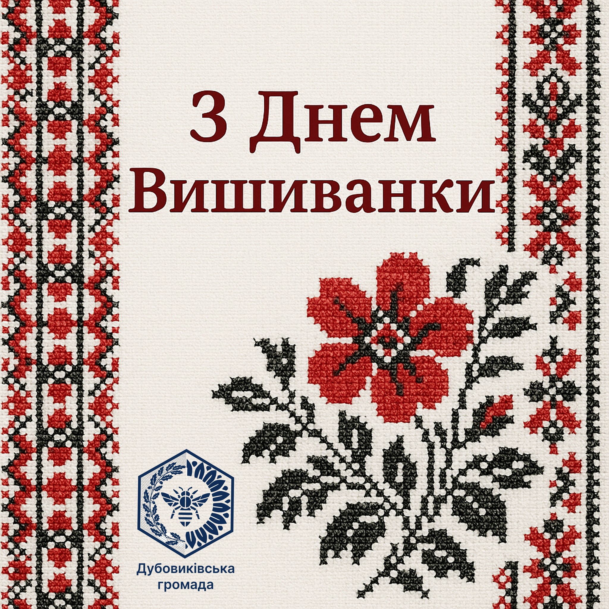 Шановні мешканці Дубовиківської територіальної громади! Прийміть найщиріші вітання з Днем Вишиванки! Це свято є одним із найяскравіших символів України, що об’єднує нас, українців, незалежно від того, якою мовою ми спілкуємося та де проживаємо. День Вишиванки – це день, коли ми відзначаємо нашу національну ідентичність та культурну спадщину.