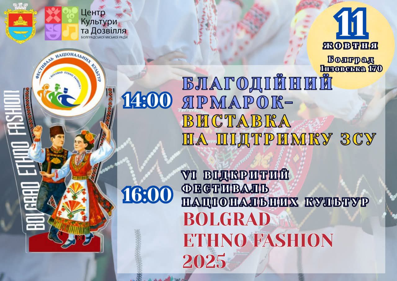 Шановні мешканці міста Болград, Болградської громади та шановні гості! Ми щиро запрошуємо вас відвідати надзвичайно яскравий та колоритний фестиваль національних костюмів, який відбудеться незабаром. Ця подія стане справжнім святом культурного розмаїття, де ви зможете побачити дивовижну різноманітність народів, що історично населяли Бессарабію.