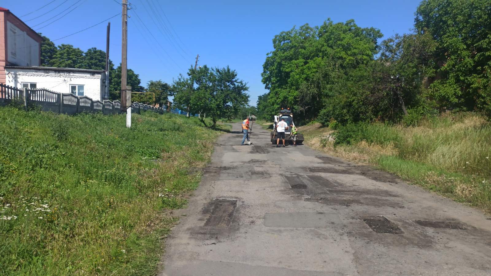 ☑️Проводяться ямкові ремонти асфальтобетонного покриття на визначених ділянках вулиць Шкільна та Соборності в Старих Санжарах.
