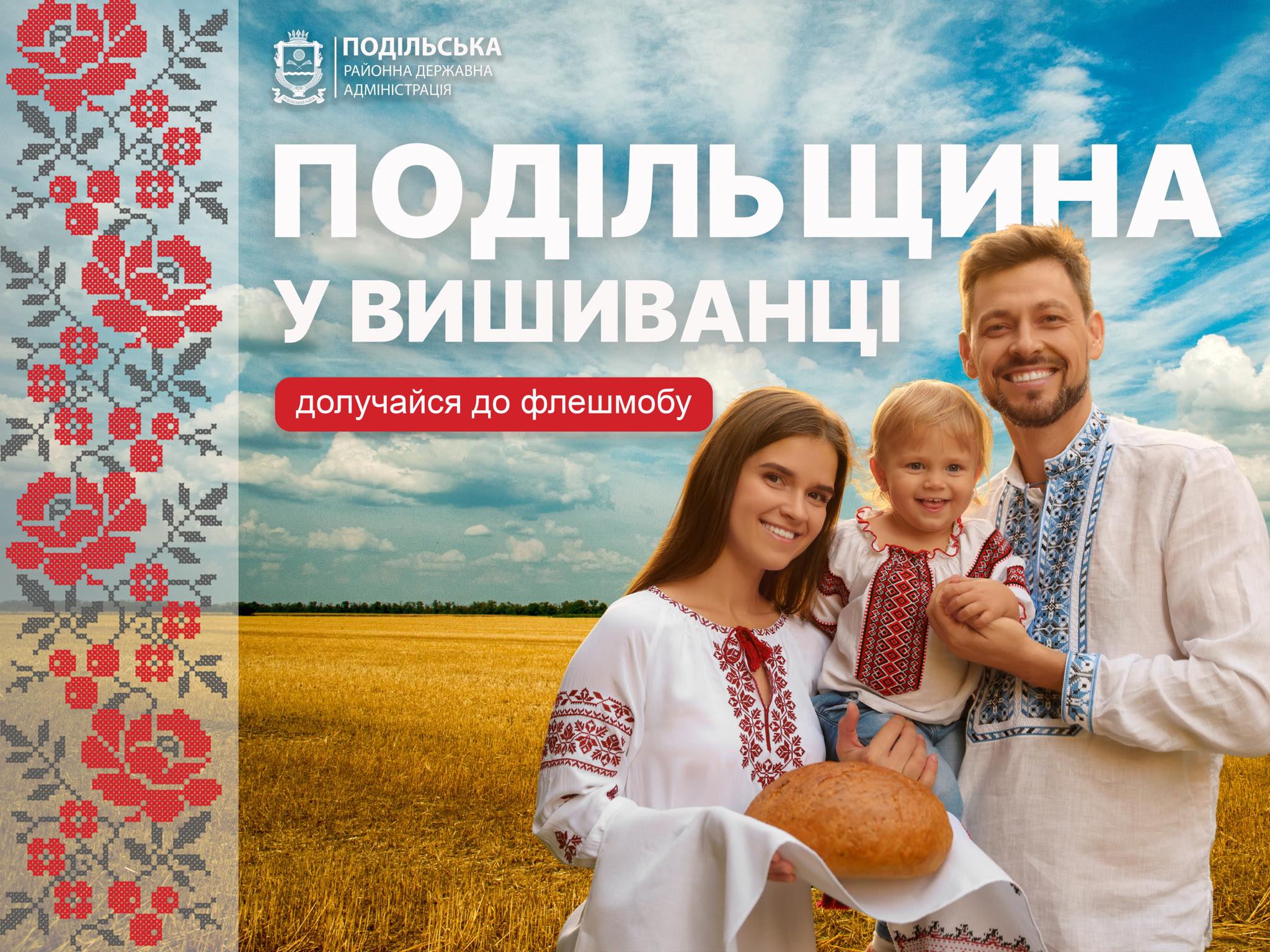 Приєднуйтесь до флешмобу «ПОДІЛЬЩИНА У ВИШИВАНЦІ» та покажіть свою любов до України! Одягніть свою найкращу вишиванку та станьте частиною всеукраїнського свята. Разом ми – сила!