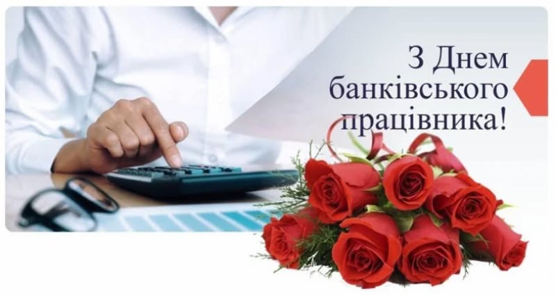Щиро бажаємо вам міцного здоров’я, особистої радості, родинного тепла, фінансового благополуччя, успішного кар’єрного зростання, душевної гармонії та тепла в серці. Нехай ваша праця завжди буде гідно оцінена, а всі професійні виклики приносять лише нові перемоги та можливості для розвитку! Нехай кожен день банківського працівника буде наповнений позитивними емоціями.