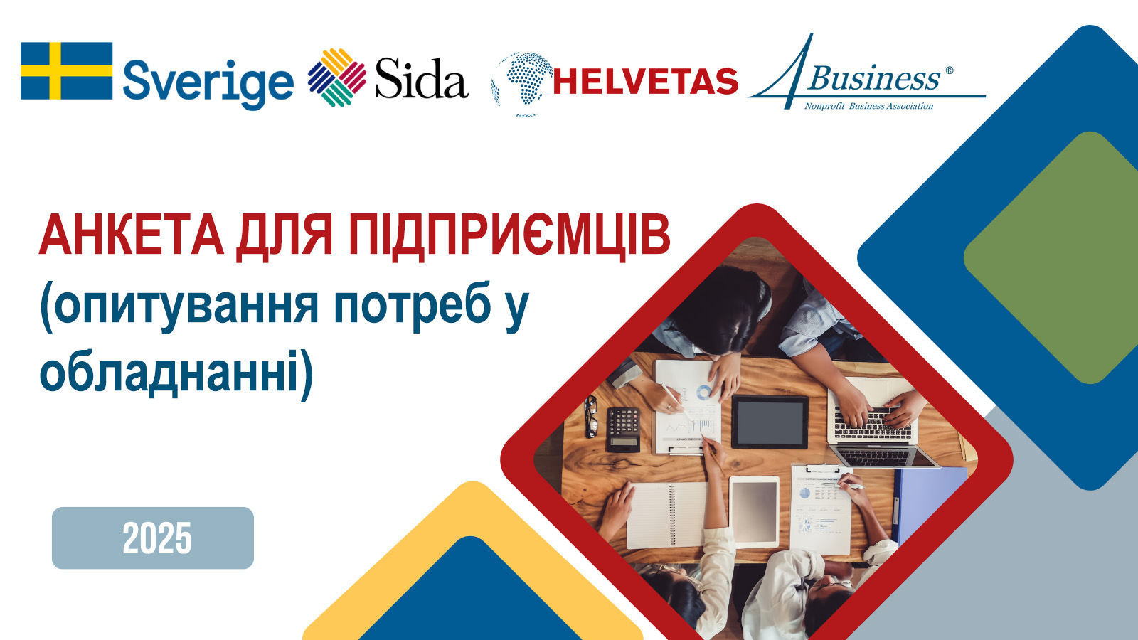 ГО «Бізнес Асоціація «4Бізнес» ініціює важливе опитування серед мікро-, малих та середніх підприємств (ММСП) регіону. Мета – детально визначити ваші потреби в обладнанні в рамках майбутньої грантової програми «Партнерство за сильну Україну – Фаза 2» (ФПСУ-2).